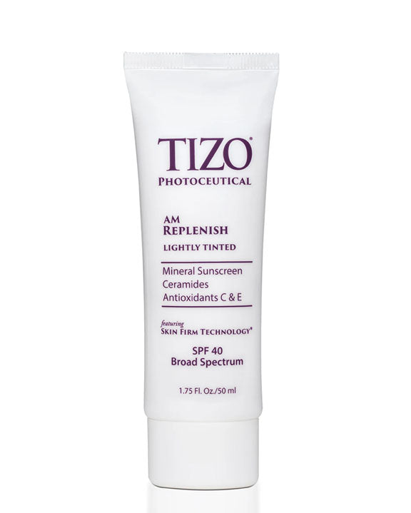 TIZO® AM Replenish Lightly Tinted is formulated with Zinc Oxide, Ceramides, and powerful Antioxidants (Vitamins C and E). Zinc Oxide protects against UV damage and Ceramides help restore the lipid layer. TIZO® AM Replenish helps prevent future UV damage and aids in the repair of existing damage resulting in long lasting moisturization.